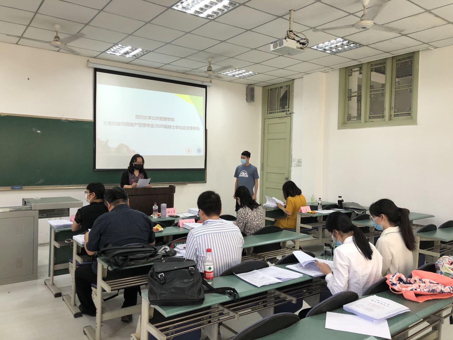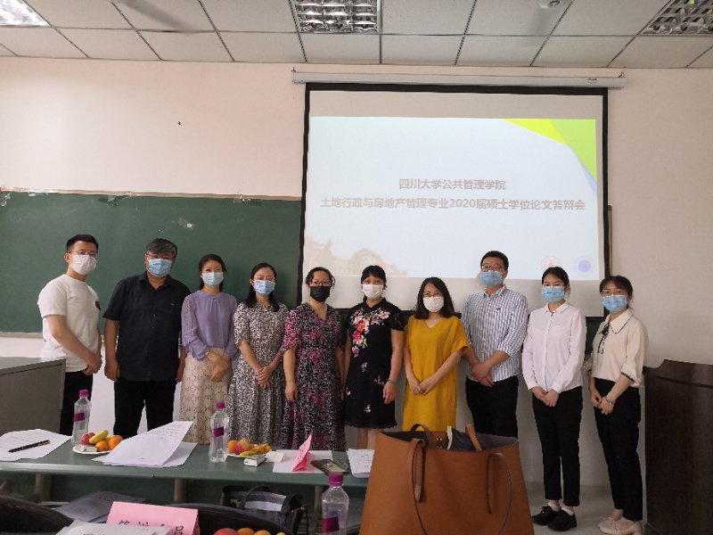 2020年5月18日,土地资源与房地产管理系2020届硕士学位论文答辩会在PA视讯游戏官网214教室成功举行。四川农业大学管理学院院长傅新红教授应邀作为答辩主席,主持了本次答辩会。答辩委员会成员包括四川省社会科学院高杰副研究员、土地资源与房地产管理系刘润秋教授、杨智恒副教授、马爱慧副教授、董欢副教授。土地行政与房地产管理专业4名研究生参加了此次答辩会。