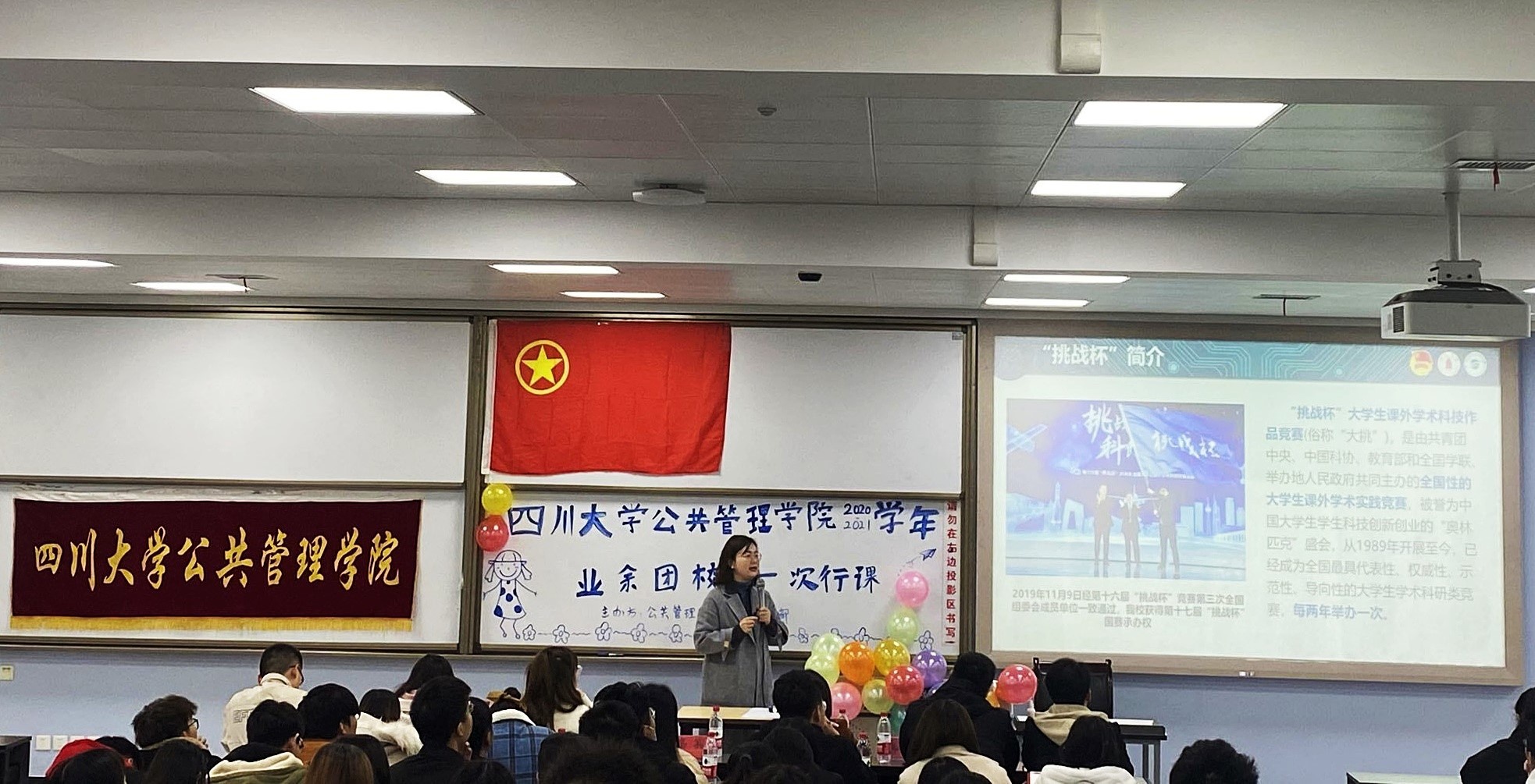 接着,张老师指出了我校将于2021年承办第十七届挑战杯国赛的重大意义,并列举了从“挑战杯”竞赛中成长起来的创新创业代表和我校近年“挑战杯”国赛成绩,激励同学们踊跃参赛。此外,张老师还详细说明了2021年“挑战杯”主题赛与专项赛参赛要求、配套活动安排和赛程安排,为同学们准备竞赛提供了明确方向。最后,2019级团支书代表和2020级团支书代表和同学们分享了活动心得体会。