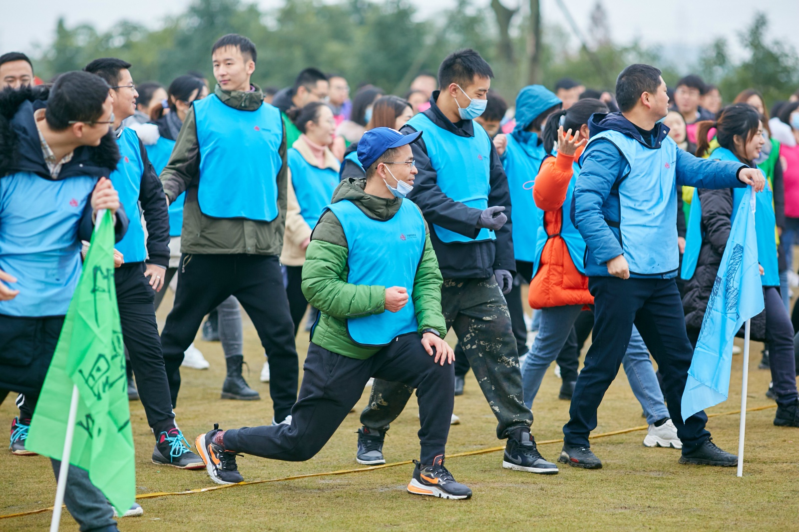 在初步构建彼此信任基础上,在心理和体能得到充分准备后,8支队伍分为两组进行团队竞赛大比拼。竞赛中,无论是“跨越沼泽”还是“旱地龙舟”,都展现出团队间彼此信任、相互帮助。在合作中,有的同学主动站出来指挥队员分工协作;有的同学思路清晰,积极支招;有的同学活泼开朗,负责气氛带动,加油号子喊得十分响亮。一番激烈的竞技比赛后,同学们的默契度和信任感得到增强。最后,近400名同学再次汇聚一起,共同拾起两圈坚实的长绳,手牵手、肩并肩组成人墙,开始了体力与毅力的终极考验项目——众人划桨士气高。活动中,所有人需用力紧绷身前长绳,8名队长站在绳上环绕一圈扮演“船长”角色,伴着激昂的音乐和长绳“海浪”,“船长”要在绳子上前行。此项团队合作活动,即锻炼胆识,又熔炼团队精神。