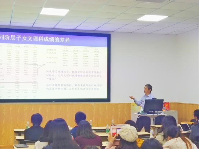 随后,依据数据结果,赵延东教授发现家庭文化资本的确对学生的文理分科产生了很重要的影响,并且从成绩上看,高阶层家庭的孩子“文理通吃”,对底阶层家庭的孩子形成“全面碾压”之势,引发了同学们对于阶层固化问题的思考。