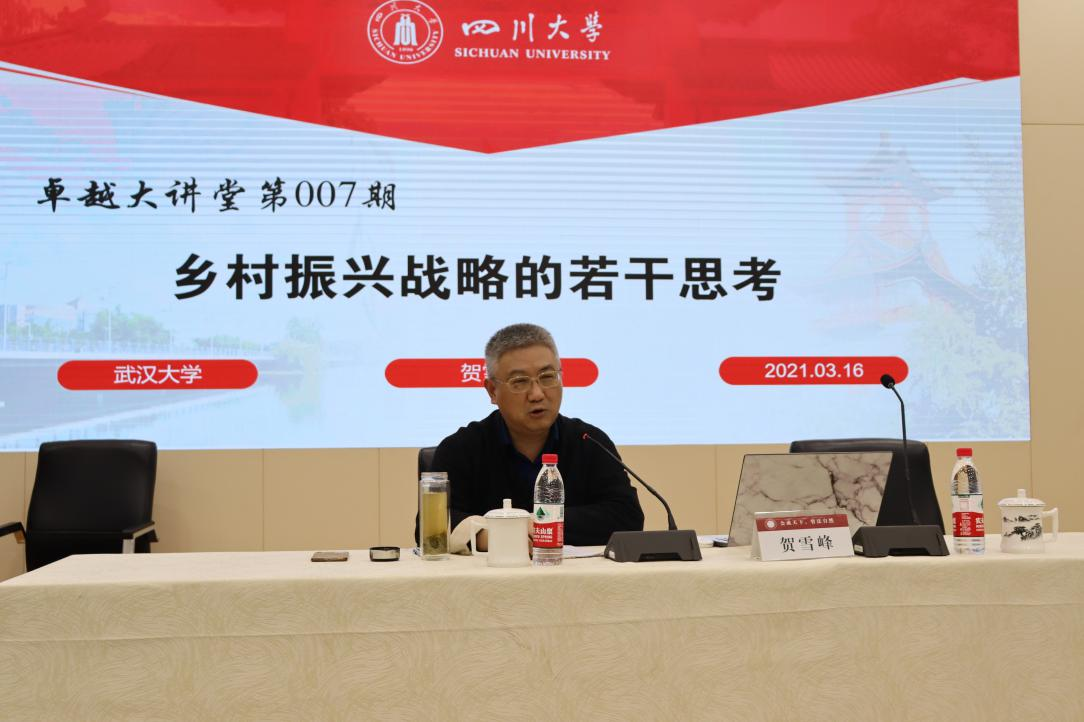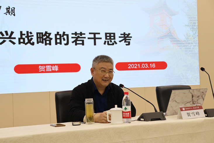 2021年3月16日,武汉大学社会学院院长,博士生导师,社区治理专家委员会成员贺雪峰教授应邀到访PA视讯,为PA视讯师生作题为“乡村振兴战略的若干思考”讲座。