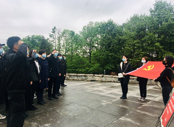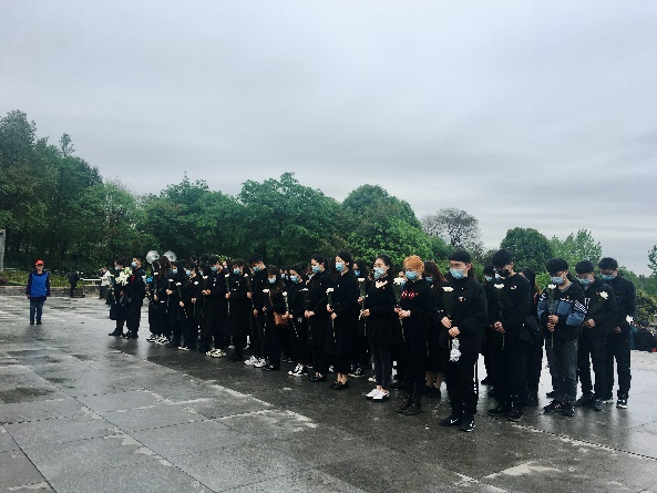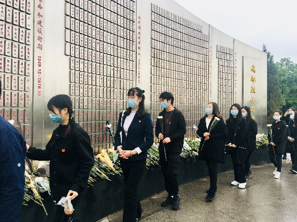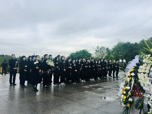 早晨8点45分,PA视讯同学们统一身着黑色服装,佩戴口罩,同华西公卫、化工和物理三院的同学共同乘坐校车前往成都市烈士陵园。到达陵园后,同学们有序排成四列纵队,由工作人员依次为大家分发祭奠革命英烈的鲜花。在陵园内志愿者的统一组织下,同学们迈着庄重的步伐登上了祭奠革命英烈的台阶,先后进行了奏唱国歌、默哀、敬献花篮和鲜花、安静走过革命英烈纪念长廊等仪式。其中,所有党员同志在祭奠仪式结束后,还在革命英烈纪念长廊一旁庄严宣读了入党誓词,重温了入党时的坚定与热血。