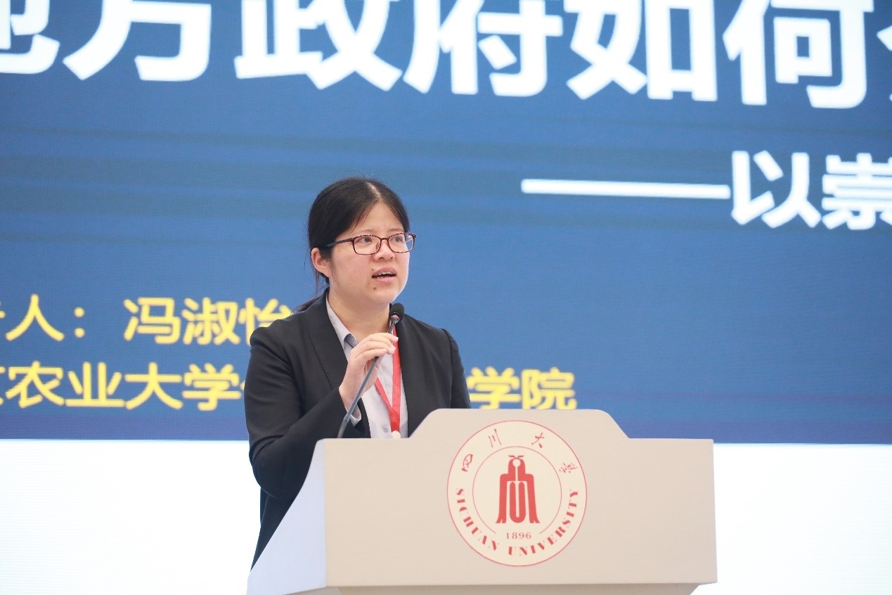 冯淑怡教授的报告题目是“地方政府如何介入农业转型——以崇州‘农业共营制’为例”。她从研究背景与问题提出、理论分析框架与研究假说、案例呈现、结论与讨论四个板块进行了深入浅出的报告。她认为,在农业转型趋势明显、地方政府介入农业转型存在争议的背景下,应该将理论分析和案例验证相结合,从构建地方政府角色和嵌套式案例分析两个创新点入手进行分析,并由此在理论框架分析的基础上提出了三个假说。冯教授以崇州农业转型发展情况为轴,将崇州农业转型实践分为政府不介入、政府不当介入、政府有效介入三个阶段并分析了其中的逻辑,最终得出三个结论:一是传统农业转型升级面临外部性、信息不对称、公共物品所引发的市场失灵问题,孕育着极高的交易费用。二是若地方政府有效介入并配合相关资源可以降低交易费用进而实现农业转型。三是政府不当介入会放大费用引发新的政府失灵从而导致农业转型失败。