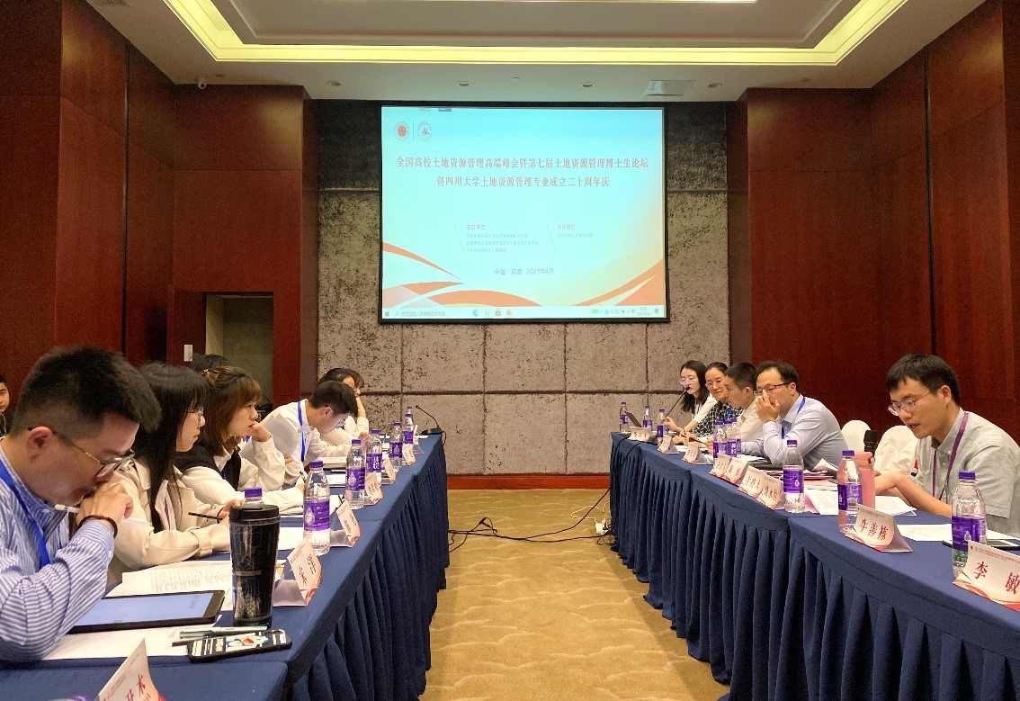 2021年4月24日,由PA视讯游戏官网承办的第七届土地资源管理博士生论坛在四川省成都市成功举办。论坛以“土地制度改革与城乡融合发展”为主题,设置了四个平行分论坛,主题分别为“资源可持续利用与城乡融合发展”、“国土空间格局优化与政府治理”、“国家粮食安全与耕地保护”、“土地产权制度改革与实践”。论坛共收到来自32所院校的93篇稿件,经评审专家多轮遴选,最终47篇论文入选会议进行汇报交流,包括来自中国人民大学、浙江大学、南京大学、PA视讯游戏官网、武汉大学、兰州大学、中国农业大学、华中科技大学、华中农业大学、南京农业大学、中国矿业大学等27所院校的青年学者、博士、硕士研究生。此次博士生论坛采取线上与线下相结合的形式进行,其中,38人进行了线下汇报,9人进行了线上汇报。