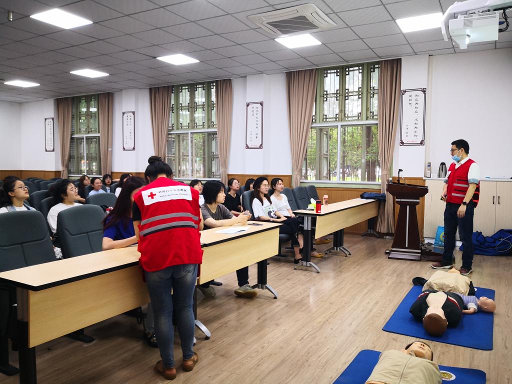 活动伊始,林老师介绍了红十字会的由来和红十字会精神,红十字会距今已经有150多年的历史,是全世界影响范围最广,认可程度最高的国际组织;其中中国红十字会是中华人民共和国统一的红十字组织,是从事人道主义工作的社会救助团体,是国际红十字运动的重要成员。中国红十字会以保护人的生命和健康,维护人的尊严,发扬人道主义精神,促进和平进步事业为宗旨。红十字志愿者秉持红十字精神遍布全国各地,开展广泛的志愿服务,其中“应急救护”是重要的志愿服务内容。