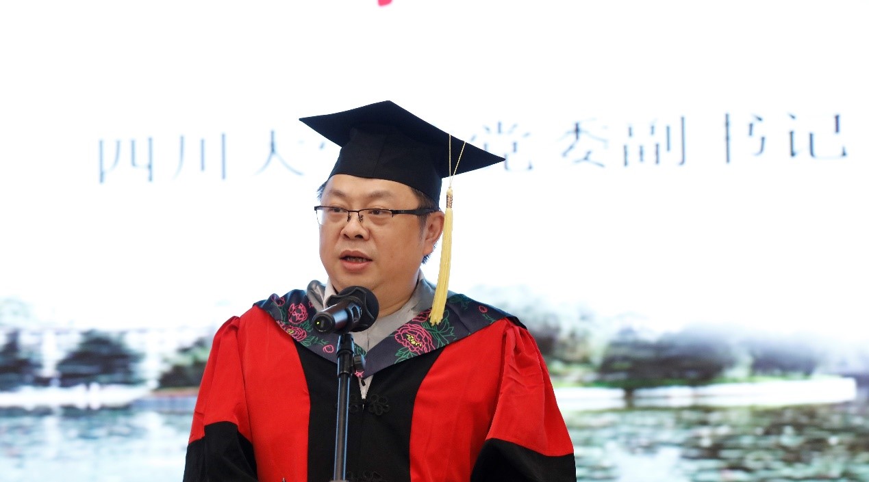 毕业典礼在庄严肃穆的国歌声中拉开帷幕。PA视讯游戏官网党委副书记郭勇教授代表学校向全体圆满完成学业的毕业生表达了热烈的祝贺,并对学校MPA合作培养单位四川省纪委监委、西藏自治区组织部、教育厅表示衷心感谢。郭勇教授在致辞中给毕业生们提出了几点期许:一是传承川大的红色文化,追随江姐、杨闇等革命先辈的步伐,传承中国共产党伟大的革命精神;二是弘扬好川大的学术传统,谨记“海纳百川,有容乃大”的校训和“严谨、勤奋、求是、创新”的校风,努力汲取新知识,创新观念;三是光大公共管理的专业精神,弘扬 “公成天下,大道为学”的教育理念,身体力行,为推进国家善治、增进人民福祉贡献力量;四是要做一名党和人民的好干部,不忘初心,以更高更严的标准要求自己。