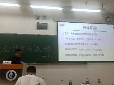 评议人对4位发言人的报告提出了建议。范晓光副教授认为梁芳的研究议题经典、文献系统、批评有力、思路清晰、测量规范,但是对数据来源多样性和核心变量的测量(同质性、时期效应、阶层等距假设)等方面提出质疑和修改建议;针对李甜甜同学的报告,范教授认为她的思路清晰、设计合理、测量规范,有很大的进步空间,比如对于样本的清理是否合理?核心变量贫困和富裕是否完全对立?受访者的回答是否区别了绝对贫困和相对贫困等问题上提出了疑问。田丰副教授对关于“第一代大学生”的研究存在一些疑惑,认为如果“第一代大学生”在职业选择(自由度、声望等等)上如果都有优势,那么结论就能更有说服力。主持人张顺教授说发言讨论辨析有助于接受新的信息,量化文章要更加重视理论和故事的逻辑,既有理论渊源又有中国经验,数据逻辑和理论逻辑要相适配,量化研究就会做的有意思。