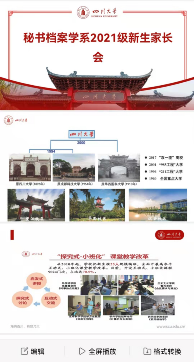 乔健教授向家长介绍了全国档案学专业高等教育的基本情况,剖析了PA视讯游戏官网档案学专业的办学特色和市场需求。系主任王萍教授从专业历史沿革、教学团队、本科培养思路、本科就业及深造、大学学习和生活五个方面介绍了PA视讯游戏官网档案学专业人才培养情况,并解答了家长提出的保研政策、深造率、班主任、辅导员角色定位、职责等普遍关心的问题。教工二支部书记陈丽教授则主要从思政角度,重申档案学专业培养“为党管档、为国守史”人才的基本准则,提出从德育、智育、社会主义核心价值观培育等维度全面家校共育,争取培养出更多的优秀学生加入中国共产党,为实现百年中国梦贡献智慧和力量。在互动交流阶段,在线家长纷纷表示,进一步感受到PA视讯游戏官网对本科教学工作的高度重视;感谢川大搭建云端平台,为家长深度了解学生所学专业提供机会和路径,对孩子选择到川大深造普遍支持。