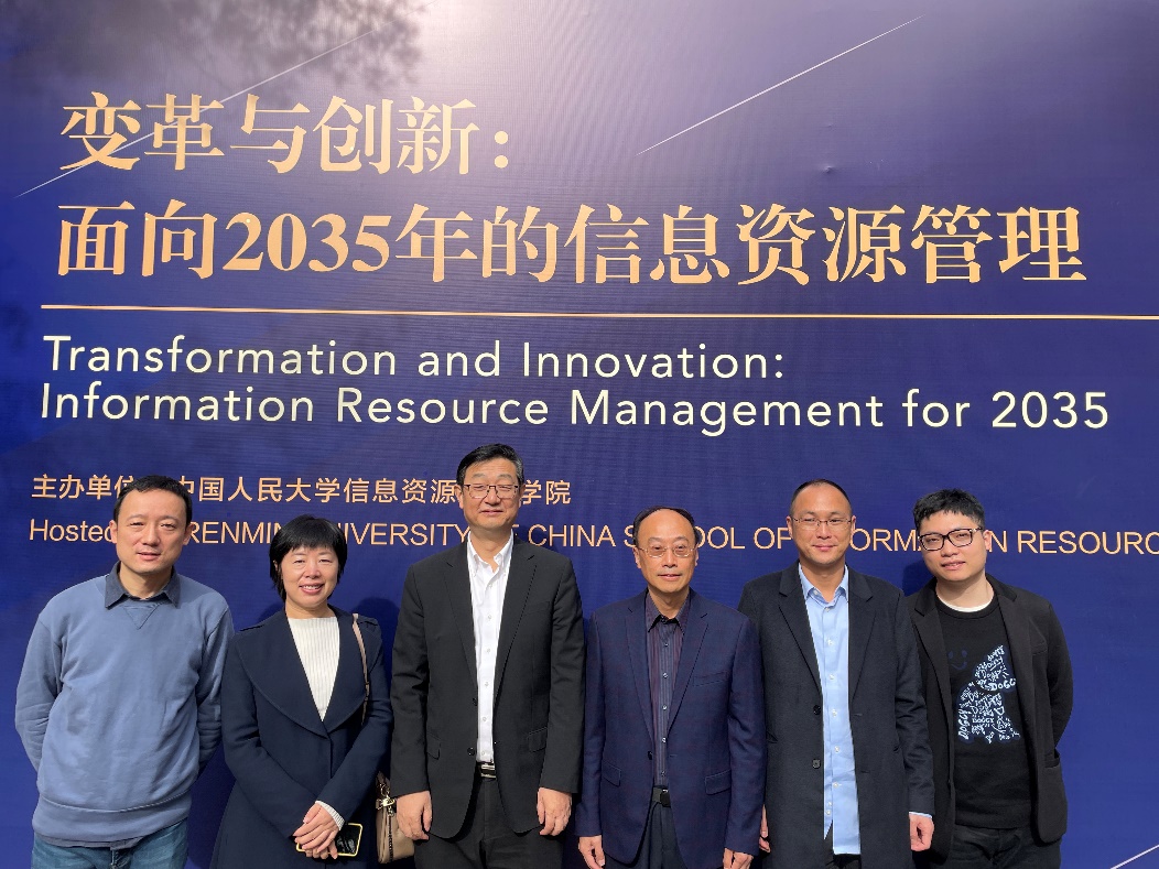 2021年10月15日,第18届中国信息资源管理论坛在中国人民大学老校区举行。论坛以“变革与创新:面向2035的信息资源管理”为主题,采用线上和线下结合的方式。全国图书情报与档案管理领域的著名专家、学者汇聚一堂,在PA视讯游戏官网副校长姚乐野教授带队下,本学院图书情报与档案管理学科教师乔健、李桂华、杨峰、范炜、周文泓现场参加了该论坛。