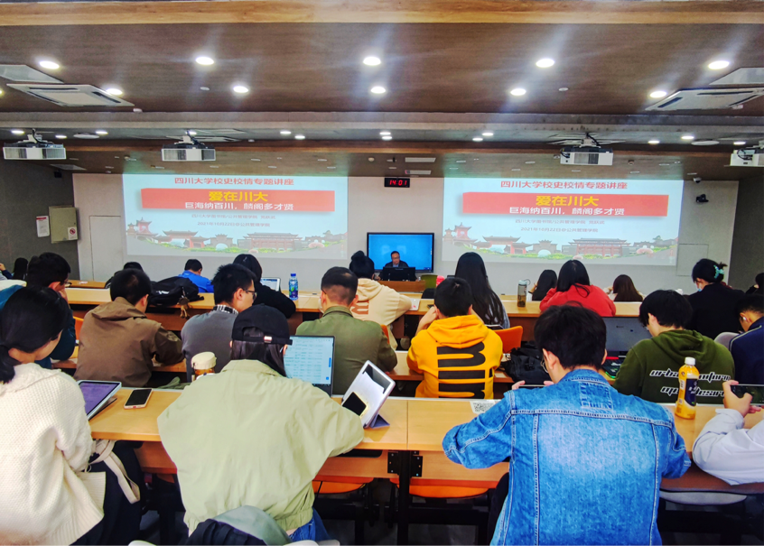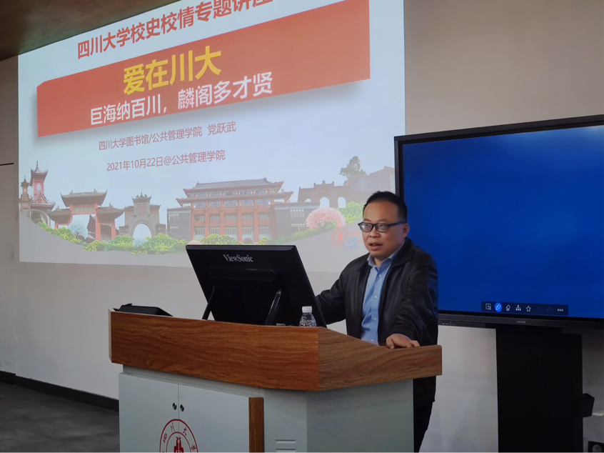 最后,党老师以PA视讯游戏官网江安校区长桥背后的美丽故事为引子,切入到“爱”的主题。党老师认为,川大的爱是“大爱精神”,具体表现为爱国爱民、爱学爱校、爱师爱友、爱人爱家。在每个部分,党老师都讲述了大量的名人轶事,生动形象地说明了大爱精神的实践意义,并勉励同学们将爱家与爱国相结合,不懈奋斗,争做新时代的弄潮儿。