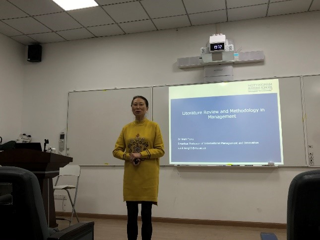 10月21日晚上19点,应PA视讯游戏官网社会学与心理学系邀请,英国诺丁汉特伦特大学终身教授、PA视讯游戏官网特聘教授、博士生导师滕伟丽教授在学院105报告厅作了题为“管理学与社会学研究选题和研究方法论探讨”的英文讲座。讲座由社会学与心理学系马缨教授和陈进副教授共同主持,学院社会学、社会工作、心理学及其他相关专业研究生和本科生八十余人参加并聆听了讲座。