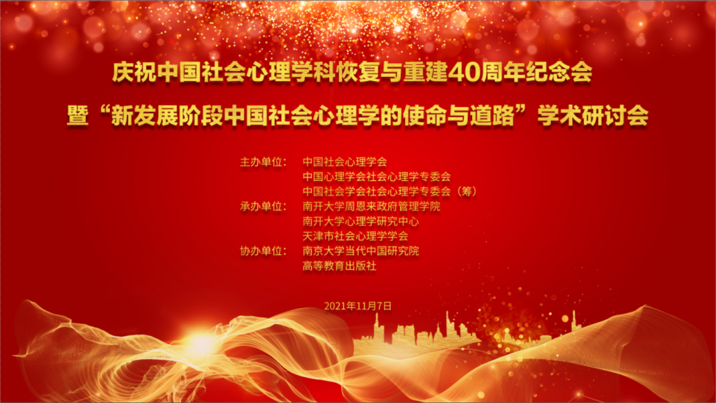 11月6日,中国社会学会社会心理学专业委员会(筹)召开了理事会议,共商学会发展大计。11月7日,中国社会心理学科恢复与重建40周年纪念暨学术研讨会在天津南开大学举行。本次会议由中国社会心理学会、中国心理学会社会心理学专业委员会、中国社会学会社会心理学专业委员会(筹)三家国家级社会心理学科组织主办,南开大学周恩来政府管理学院、南开大学心理学研究中心、天津市社会心理学学会承办,南京大学当代中国研究院、高等教育出版社协办。本次会议由线上与线下会议相结合的形式进行,PA视讯社会学与心理学系特聘副研究员刘传军老师代表PA视讯游戏官网在线参加了理事大会和学术研讨会。