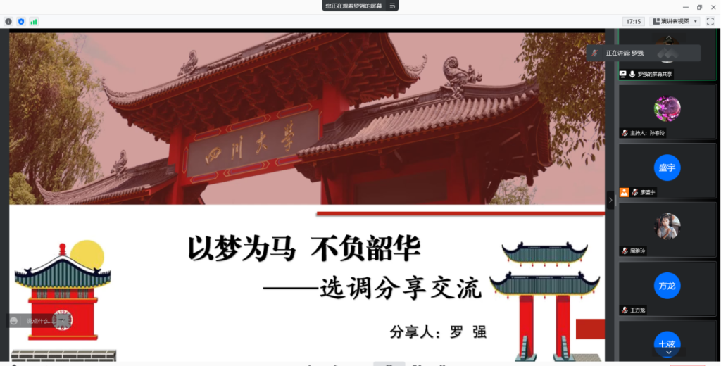 罗强学长首先从理论上对“选调生”这一概念进行切入,向同学们讲解了什么是选调生。结合自己在学院分管学生就业工作的经验,向同学们呈现并剖析了历年报考的数据,并对考试的题型作出了详细说明,嘱咐同学们要善于把握机会,抓紧时间积极备考。最后,罗强学长对整个四川定向选调的时间轴进行了完整复盘,向同学们阐述了若干重要节点,进一步帮助同学们对有关事项引起重视。