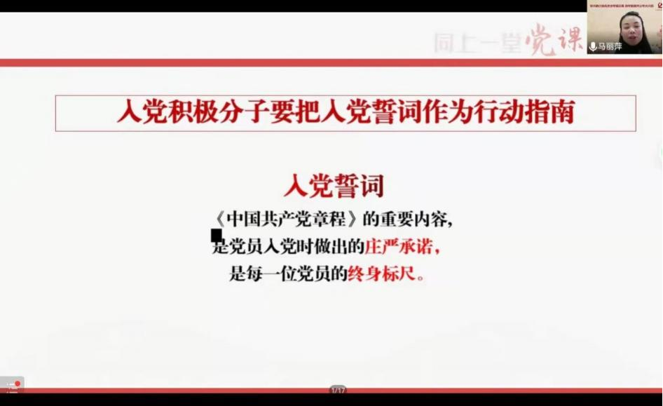 下午14:00,PA视讯游戏官网机关党委办公室主任马丽萍老师带来题为:“听党话 跟党走 努力成为新时代合格党员——如何发展成为一名优秀的共产党员”的讲座,讲座由陈萱源老师主持。