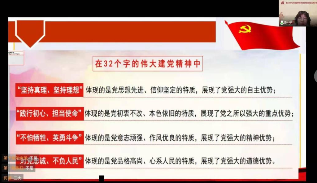 为进一步提高学生党员的党性修养,提升学生党员综合能力,充分发挥学生党员在学生中的先锋模范作用,2021年11月13日至14日,为期两天的PA视讯游戏官网第五期党员能力提升班在线上顺利开展。