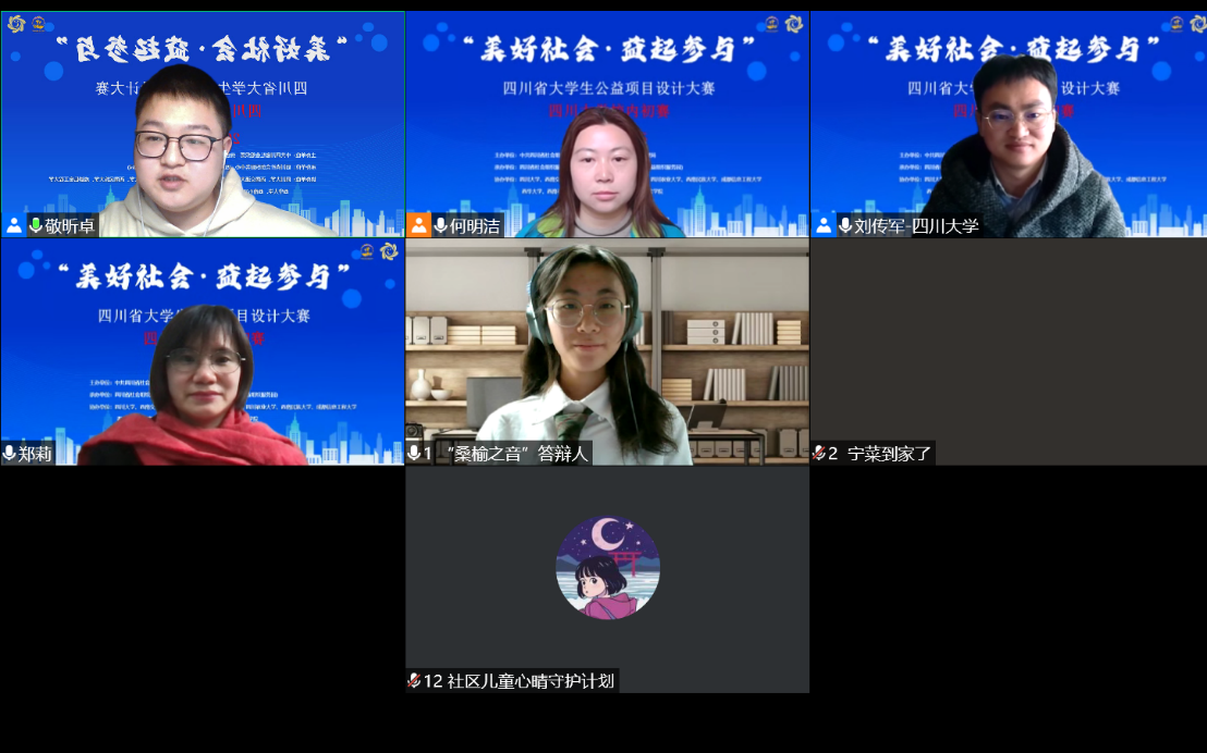 为深入贯彻落实党的十九大精神,激发大学生关注社会、热心公益的积极性,深化校地合作,在四川省民政厅支持下,中共四川省社会组织第二综合党委、四川省社会组织管理局于2021年10月发起“美好社会•益起参与”四川省大学生公益项目设计大赛,PA视讯社会学与心理学系承办本次大赛的校内初赛工作。2021年11月25日“美好社会•益起参与”PA视讯游戏官网校内初赛以在线会议的方式圆满完成!