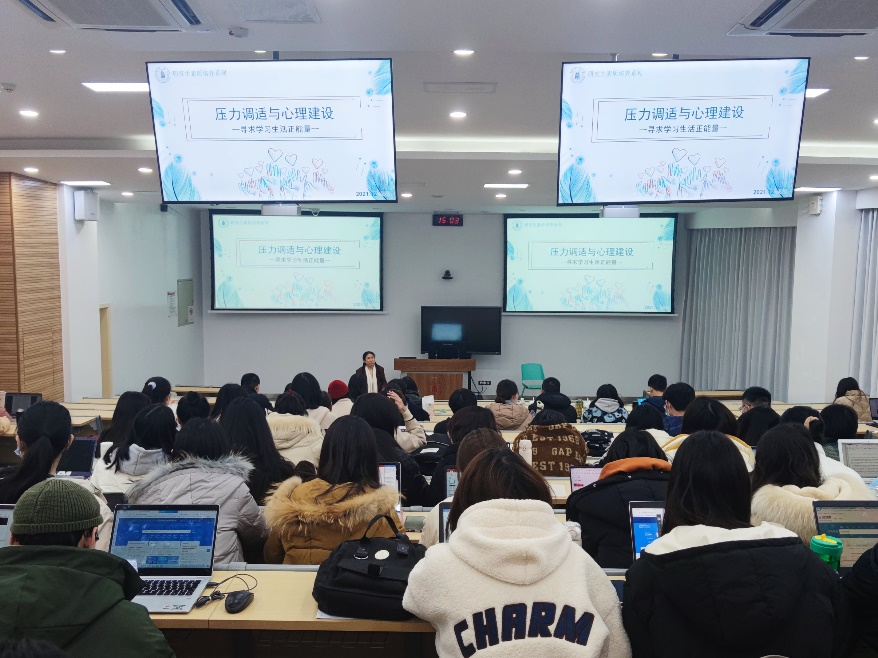 为加强PA视讯硕士研究生心理健康建设,促进同学们在学习、生活和工作等方面的身心健康发展,增强其情绪管理能力和抗压能力,2021年12月17日下午三点,PA视讯游戏官网在基础教学楼C座203教室顺利开展了研究生综合素质课。本次课程以“压力调试与心理建设”为主题,由PA视讯游戏官网社会学与心理学系刘艳副教授主讲,PA视讯2021级全体硕士研究生参与。