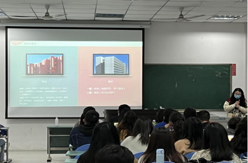 在中场问答互动环节后,来自2020级图书情报专业的王双玲从科研单位面试经验和如何平衡论文写作、选调复习与寻找其他工作两大方面进行分享。王双玲详细介绍了自己参与面试的过程,提醒同学们在面试中要注意的细节,同时她建议同学们在面临多个选择时,要注意把握时间线,妥善处理各种可能遇到的问题。