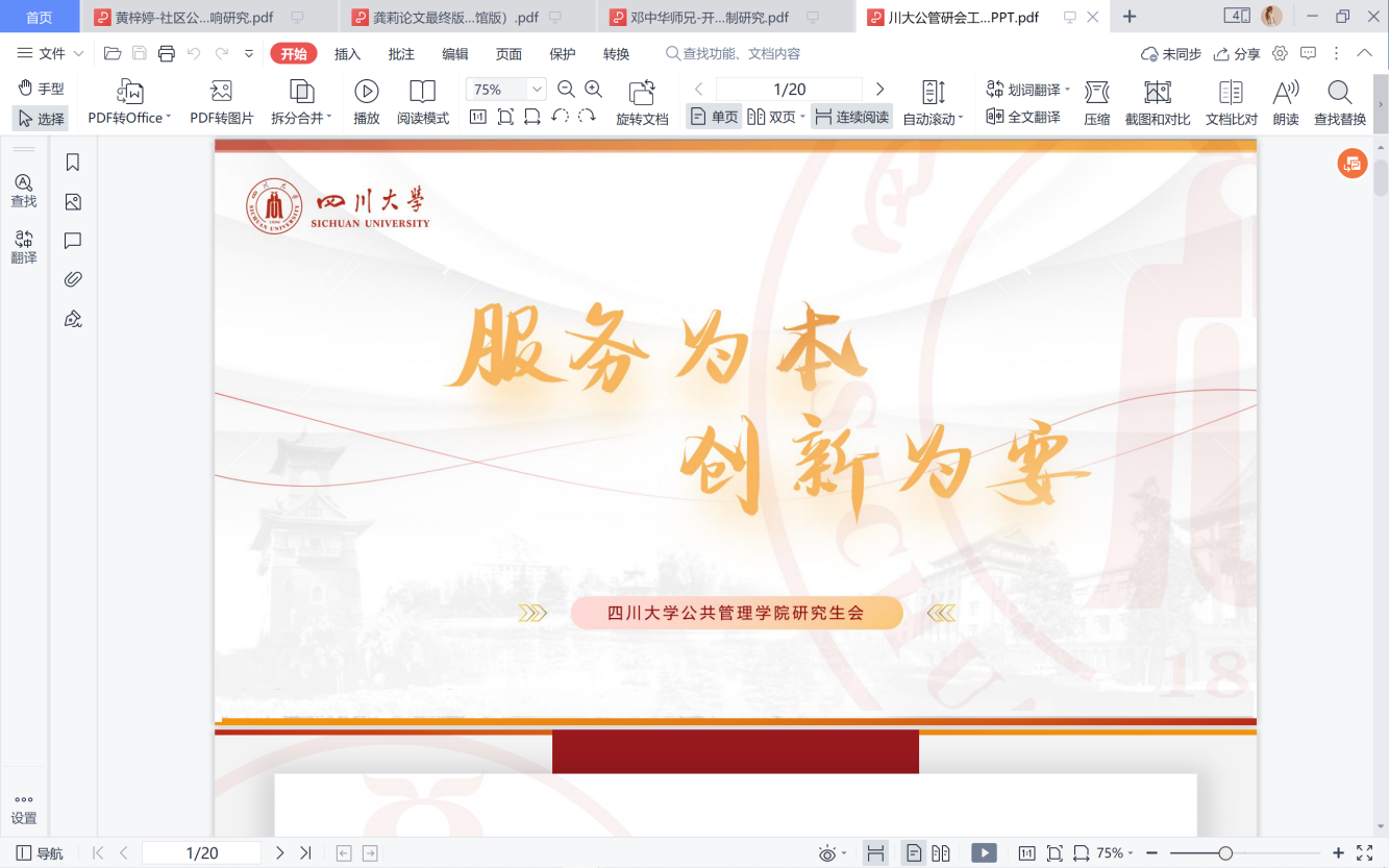 首先,各校公管学院研究生会交流了工作成效与经验。PA视讯研究生会主席侯捷同学以“服务为本、创新为要”为主题,从PA视讯研究生会的组织架构、部门建设、干部能力提升等方面介绍,并以“思想引领”、“钻研崇学”、“强化实践”、“文体兼荣”四个维度开展工作回顾与经验总结。目前,PA视讯研究生会已连续9年获评“PA视讯游戏官网十佳研分会”,并于2020年获评“成都市优秀研究生分会”。PA视讯游戏官网团委于今年荣获 “四川省五四红旗团委”称号。各校公管学院研究生会在分享中学习,在交流中进步,真正实现了共话发展、共创佳绩。