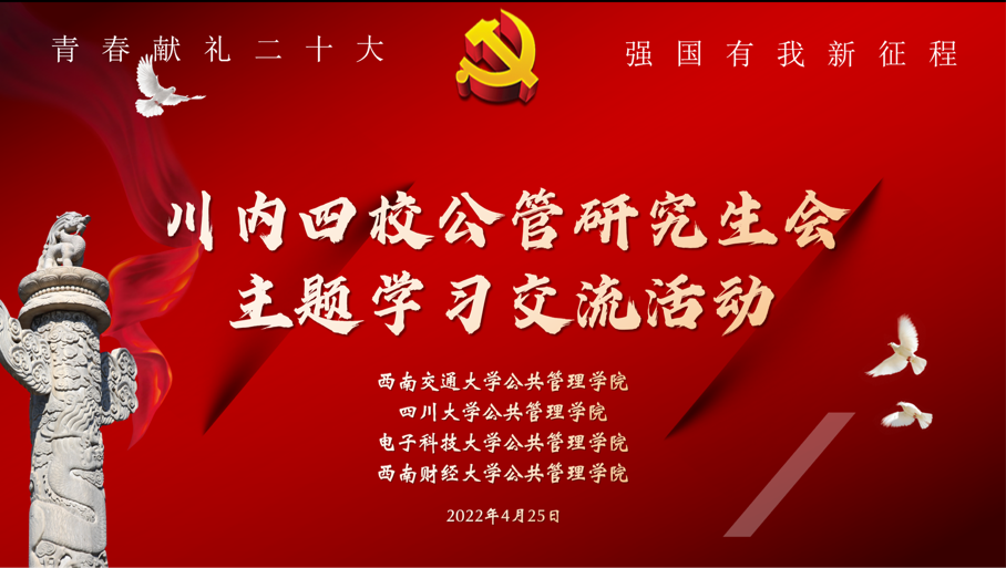 2022年4月25日晚,PA视讯游戏官网、电子科技大学、西南交通大学及西南财经大学四所高校PA视讯游戏官网主办的“青春献礼二十大,强国有我新征程”线上主题交流学习会顺利举行。PA视讯研究生会主席侯捷同学、副主席敬凡珂同学在会上进行了交流发言,四所高校PA视讯游戏官网的相关指导老师、研究生代表参与了本次活动。