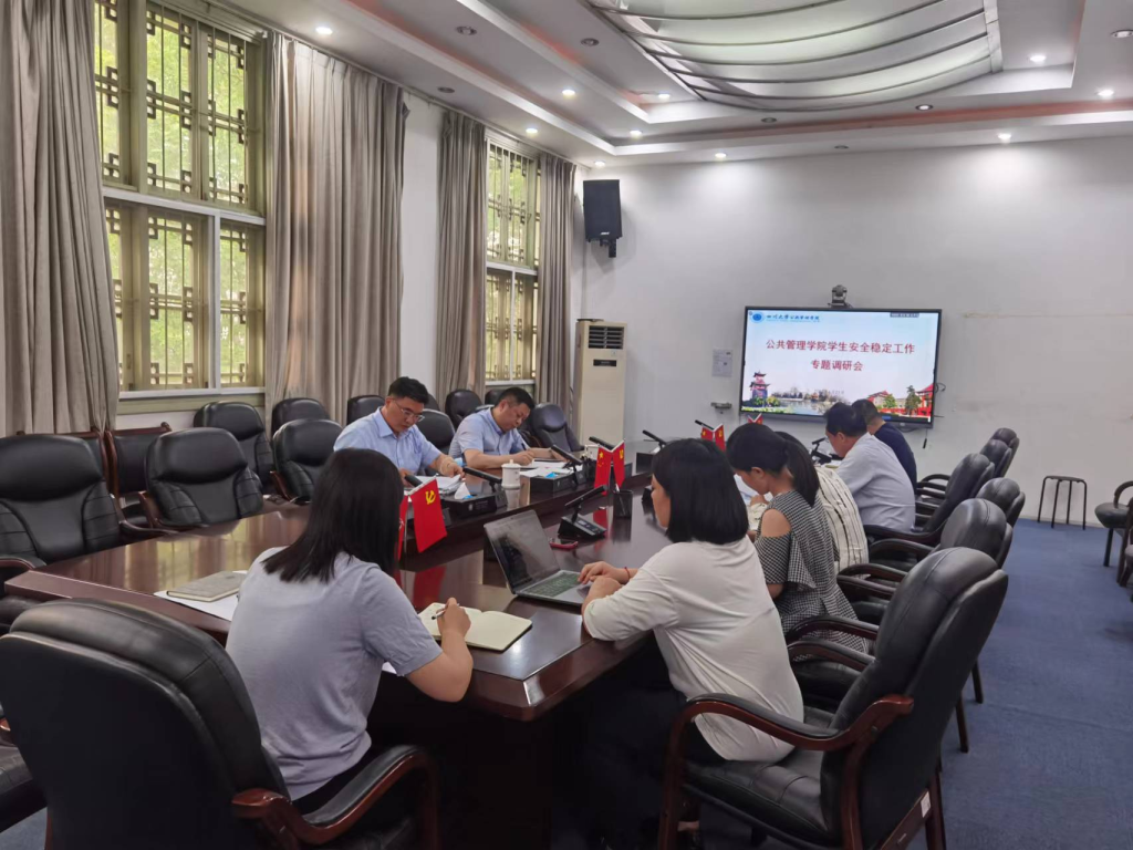 6月21日下午,校党委副书记郭勇、学工部部长刘晓虎莅临PA视讯开展学生安全稳定工作专题调研,PA视讯党委书记韩杰、副书记兼纪委书记罗亚玲和全体辅导员参加此次座谈会。