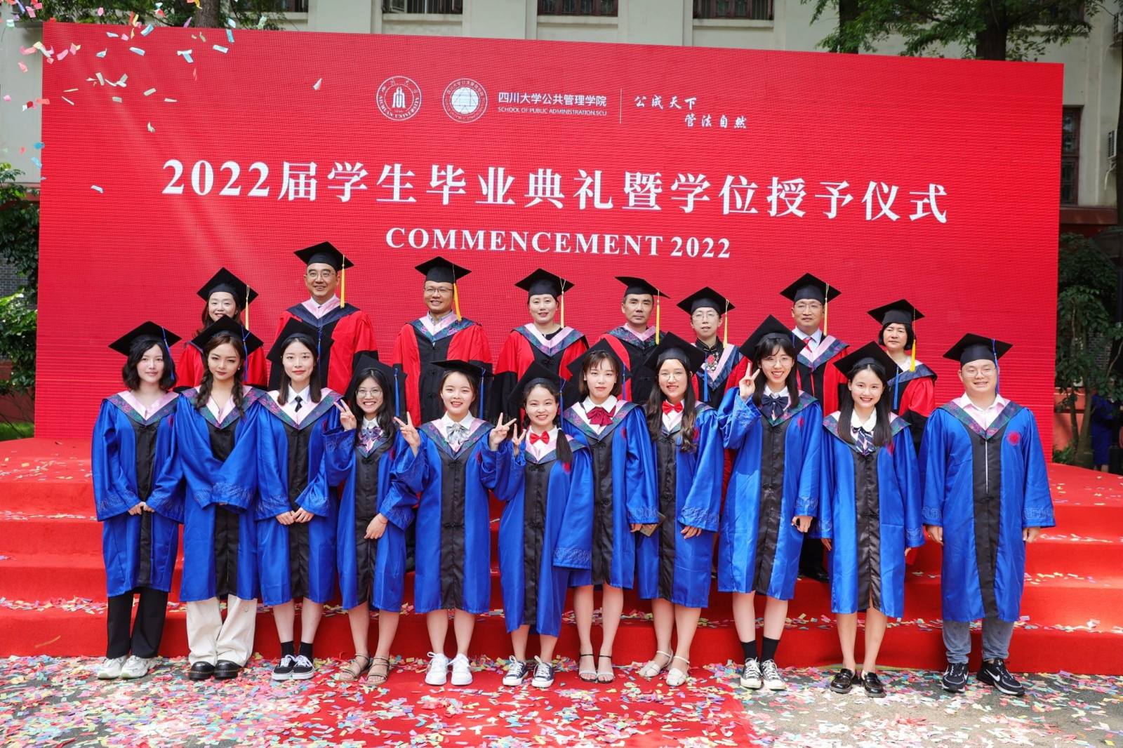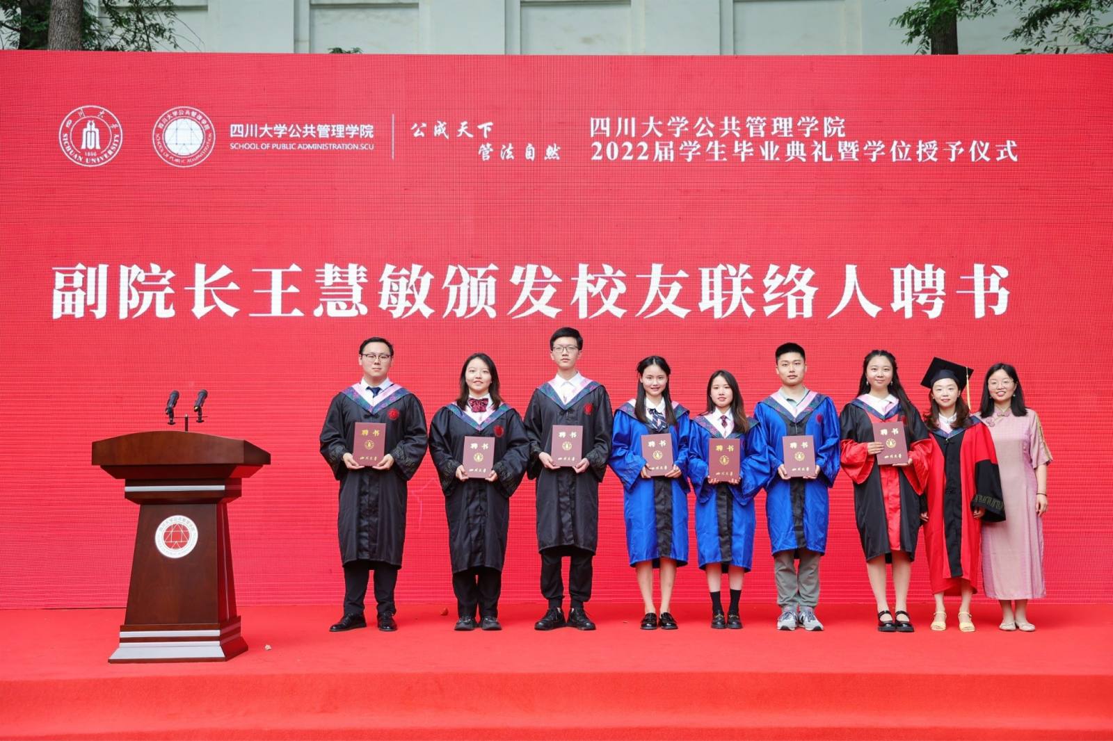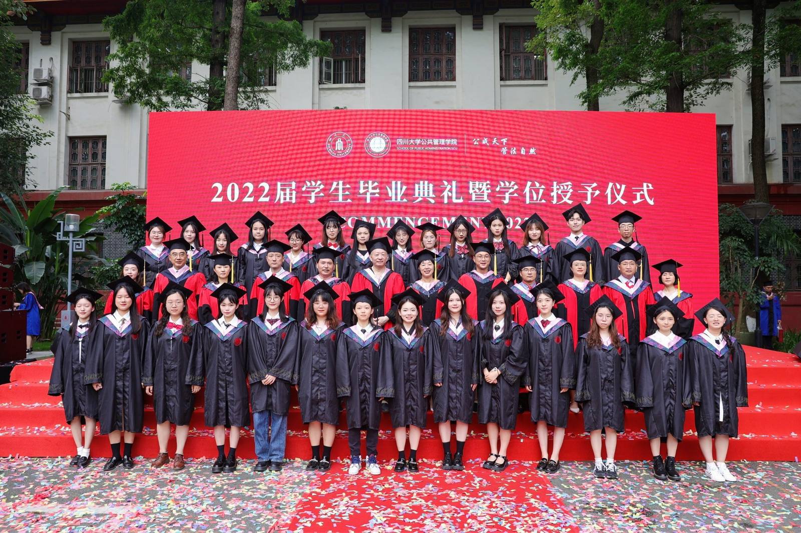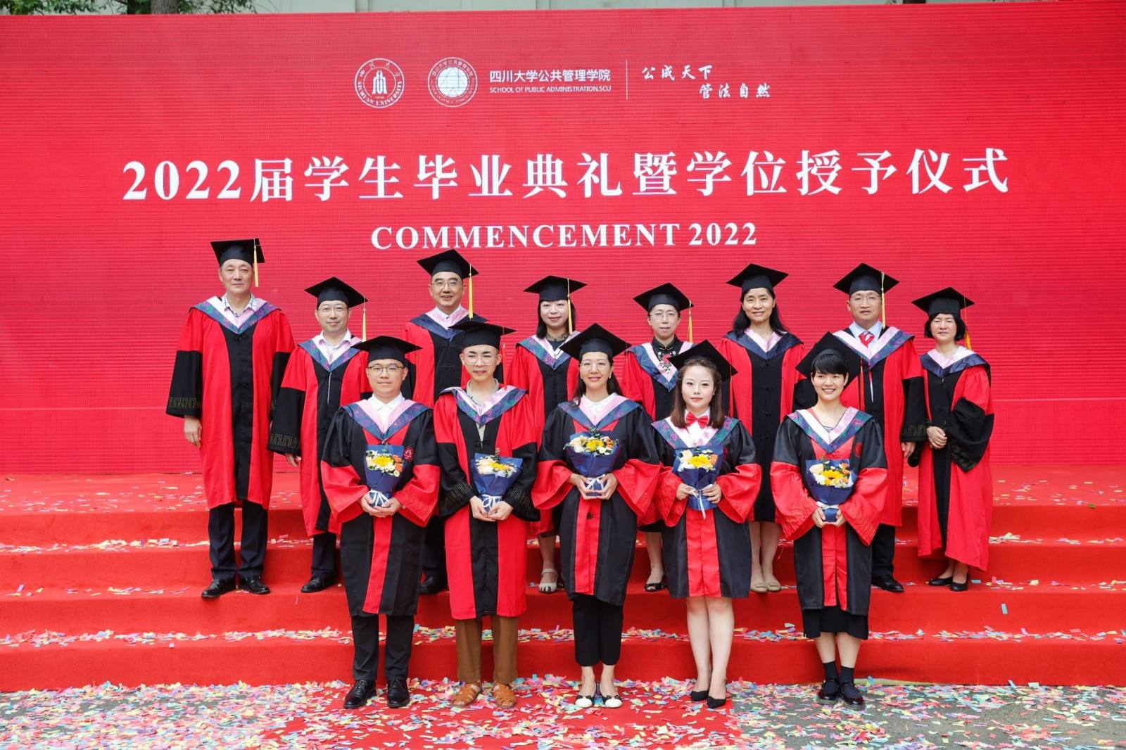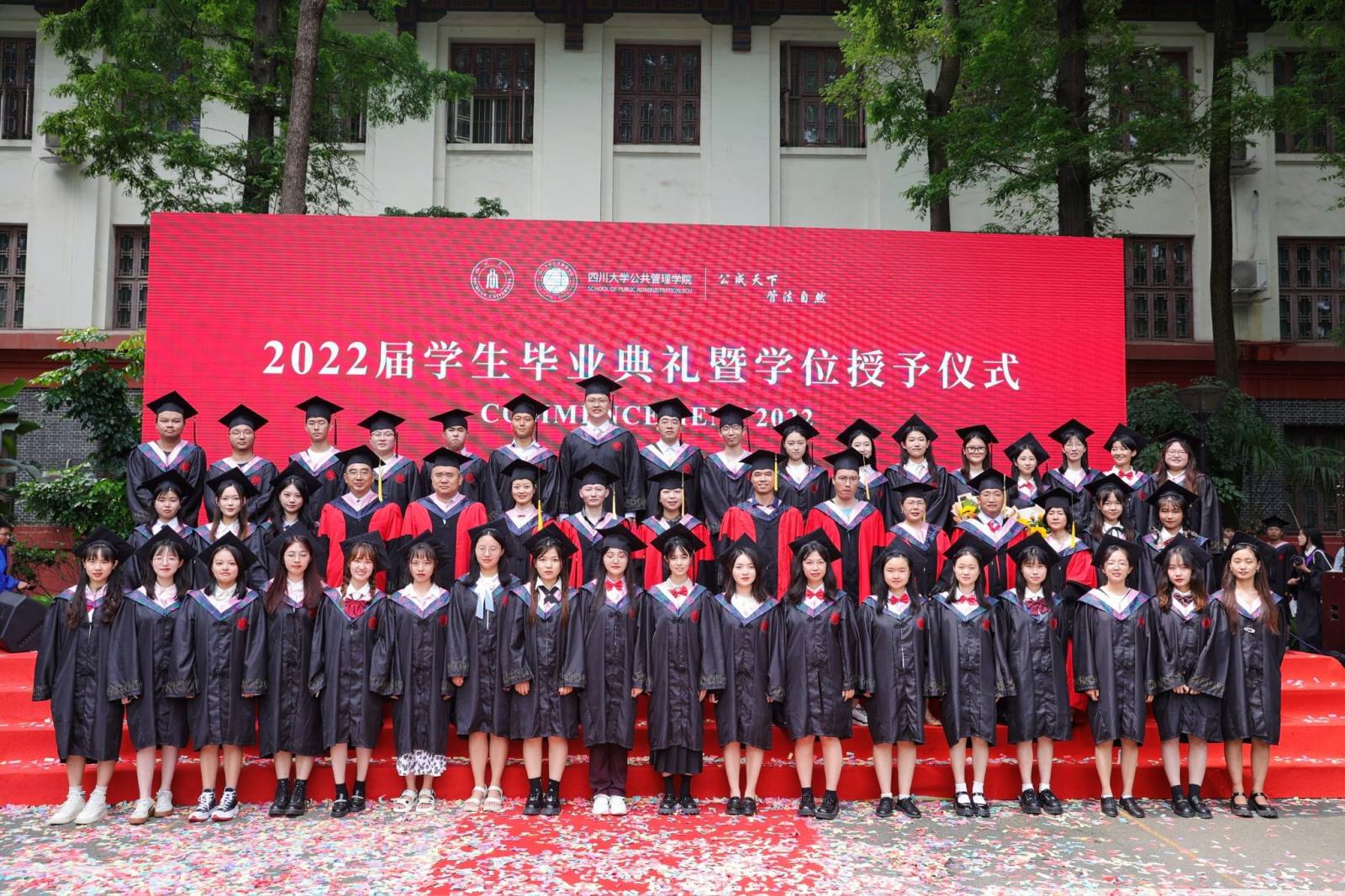学生代表2022届本科毕业生徐宇航同学在发言中感恩学院的培养、老师的教诲、同学的陪伴,表示将记住老师们的嘱咐,并将“公成天下,管法自然”的院训撒播四方。校友代表、中共成都市委办公厅会议处处长、2013届MPA毕业生邓冰梅在发言中祝贺学弟学妹们顺利毕业,并以自己的成长经历鼓励学弟学妹在奔往人生新征程中不怕苦累、勇敢前行。