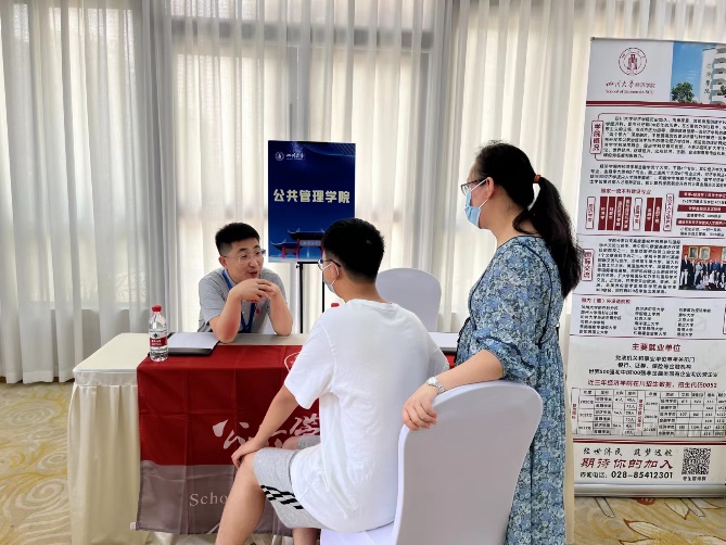 公管招生宣传工作组由档案学专业王萍教授,劳动与社会保障专业张浩淼教授,信息资源管理专业袁莉副教授,社会工作专业李诗颖副教授,专职组织员廖海燕老师和教学管理科四位老师参与,分别组成了三支招生小队同期赶赴广西多个城市参加当地各重点高中及社会场举行的高招会。6月25日,在南宁市青秀区、柳州国际会展中心两个会场同时举行;6月26日,在南宁市武鸣区、柳州铁一中学、桂林会展中心、桂林观光酒店四个会场同时进行;6月27日在钦州二中、桂林观光酒店两个会场同时进行,共八场与考生及家长面对面的线下咨询答疑活动。高招会现场人山人海,PA视讯游戏官网咨询点被学生和家长围的水泄不通,老师们一边分发宣传册一边为考生与家长做一系列关于成绩定位、招生计划、投档比例、录取原则、专业介绍和选择、志愿填报等详细的解读及建议。同时,还对PA视讯游戏官网进行了全面详细的介绍,吸引大批高二及准高三的考生对PA视讯游戏官网的兴趣,立下了好好学习把川大作为目标的决心。