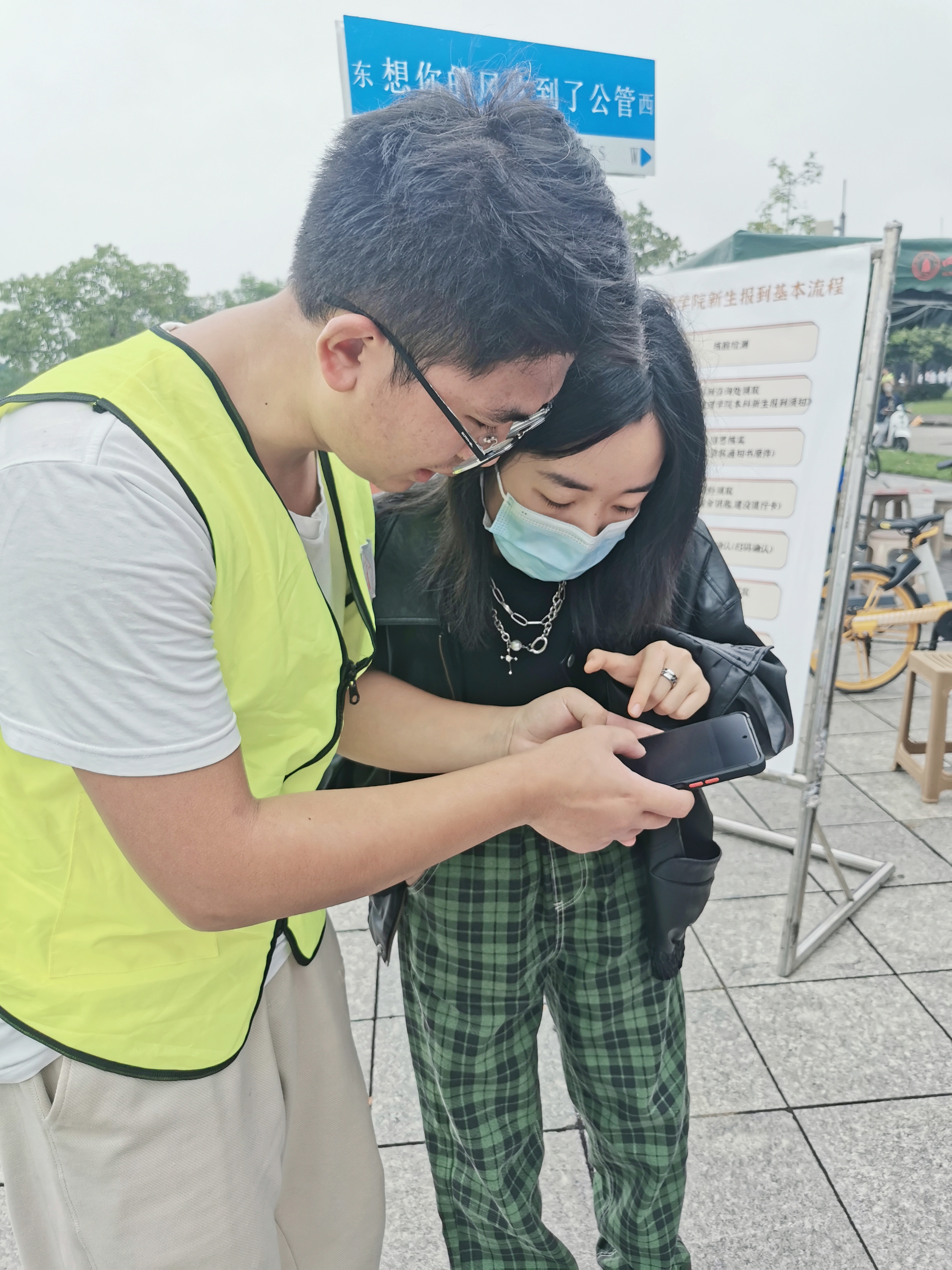 迎新志愿者们为新生提供了从入校接引、行李搬运、流程引导、入住办理的全过程服务。负责接引的志愿者们在校车下车点举着院牌等待新生的到来,待新生下车,他们便会接过新生的行李,引导新生前往报到处。负责报到工作的志愿者们在学院报到处进行着资格确认、信息核实、一卡通及宿舍钥匙发放、物资发放等工作。在报到处流程结束后,志愿者们积极引导新生核酸检测,帮助他们搬运行李并带领他们前往宿舍。