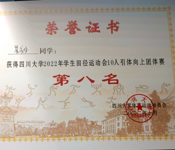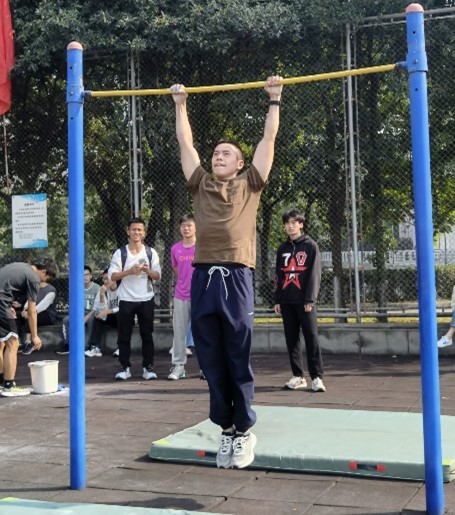 团体引体向上比赛中,运动员们的动作一气呵成,干净利落,翟成龙等同学取得引体向上团体赛第八名的成绩。