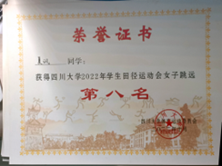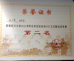跳远比赛中运动健儿们龙腾虎跃、一跃千里。运动员们微屈双膝,摆动手臂,千钧一发之际发力腾跳,划出优美的弧线。连子隽等同学共同努力,荣获团体跳远第二名的佳绩!