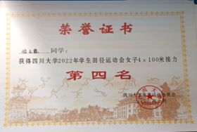 在女子4×100接力赛中,运动员们健步如飞,挥汗如雨。她们盯紧前方,超越对手。在跑道旁同学朋友的呐喊声中,在志愿者的鼓励下,徐玉霖等同学获得了4×100接力赛第四名的好成绩!