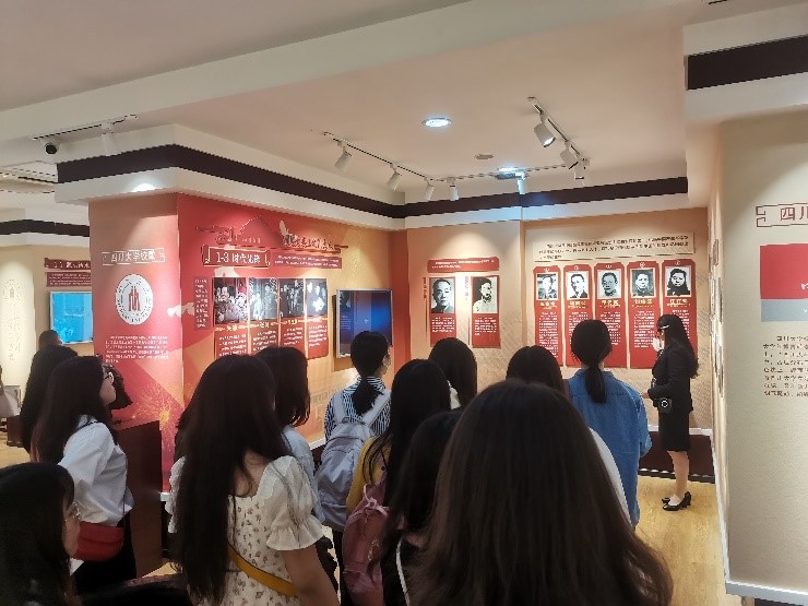 当日下午13:30,同学们在辅导员老师的带领下乘车来到位于望江校区的校史展览馆。讲解员以PA视讯游戏官网的历史变迁为时间线索,带领同学们依次参观了校史展览馆的序厅、一楼的“润万厅”和二楼的“流风厅”,共同追溯学校的发展历程。同学们了解到朱德、巴金、郭沫若、吴玉章等杰出校友的感人事迹,重温了PA视讯游戏官网从成立至今126年的风雨历程。