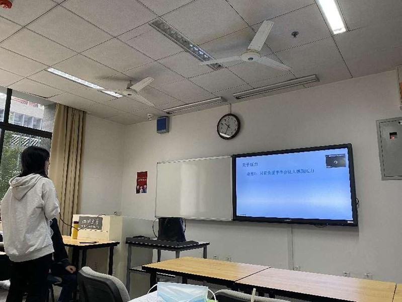 谢老师结合自己丰富的大学生心理健康教学经验,与同学们就“研究生心理健康状况”这一主题展开了讨论。首先谢老师分享到世界卫生组织专家预测人类已经进入“心理疾病”时代,在今后10—20年内,全球将有1/5的人罹患各种心理疾病,排在前10位的死因中,有3项将源于心理因素。谢老师也提到自2017年以来在校大学生患心理疾病的人数和种类都在增多。对研究生来说,学业压力在二年级的时候是最大的,有54%的人情绪低落,无法正常工作。这一现象对心理学专业的同学们来说值得思考和讨论。紧接着谢老师引出两个问题:是否只有负面事件让人感到压力?压力感和焦虑感是否可以划等号?就这两个问题,同学们发表了自己的观点,认为令人开心的事情也会给人带来压力,但压力不等于焦虑。