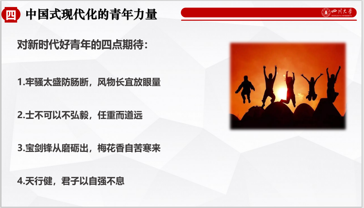 会后,同学们纷纷表示讲座既有理论高度又有丰富事例,对理解中国式现代化大有裨益,也坚定了争做新时代好青年的信心和决心。