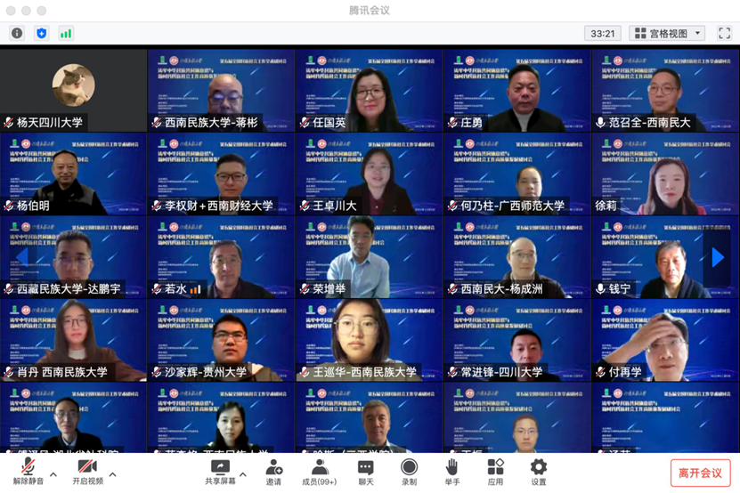 本届会议以“铸牢中华民族共同体意识与新时代民族社会工作高质量发展”为主题。来自PA视讯游戏官网、中央民族大学、厦门大学、西南民族大学、贵州大学、云南大学等40多所高校,80余名专家学者齐聚云端,以铸牢中华民族共同体意识为主线,围绕着中国特色民族社会工作理论和实践成果展开讨论。西南民族大学党委常委、副校长张华志教授,四川省民政厅一级巡视员杨伯明,中国社会工作教育协会副会长庄勇教授,中国社会工作教育协会民族社会工作专业委员会主任任国英教授出席开幕式并致辞。西南民族大学民族学与社会学学院院长蒋彬教授主持开幕式。PA视讯王卓教授应邀担任第一分论坛主持人,并携团队成员常进锋博士、赵鑫同学等参会交流。