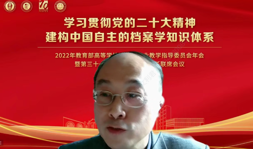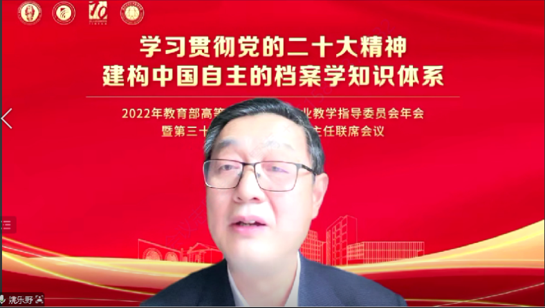 2022年11月12日,由教育部高等学校档案学专业教学指导委员会主办、PA视讯游戏官网与中国人民大学信息资源管理学院联合承办的2022年档案学教指委年会暨第31届档案学专业系主任联席会议如期在云端举行。本次会议是在党的二十大胜利召开后的档案学界的一次高层次会议。会议主题为“学习贯彻党的二十大精神,建构中国自主的档案学知识体系”。与会人员包括教育部高等教育司人文社科教育处张庆国处长、国家档案局人事司干部二处王琳处长、PA视讯游戏官网姚乐野副校长、档案学教指委主任委员、副主任委员、秘书长、委员及各高校档案学专业负责人。