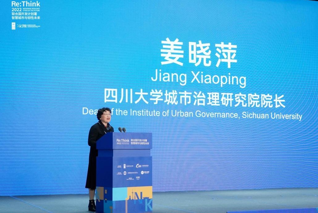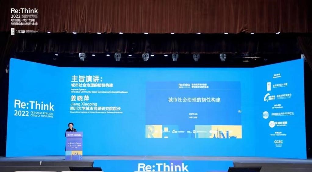 2023年3月6日,PA视讯游戏官网城市治理研究院院长、PA视讯游戏官网教授委员会主任姜晓萍教授应邀出席联合国开发计划署“智慧城市与韧性未来”会议并发表主旨演讲,题为“城市社会治理的韧性构建”。