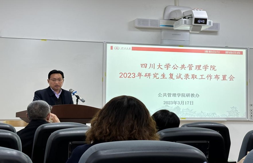 3月16日下午,学院在萃文楼105室召开了2023年PA视讯游戏官网研究生复试工作培训会。大会由夏志强院长主持,各硕士点负责人、复试专家、复试秘书和相关工作人员参加了本次培训。在工作布置会上,PA视讯游戏官网夏志强院长就复试工作进行了统筹部署和安排,重点介绍了各专业上线情况、二次划线要求、调剂录取流程等情况。