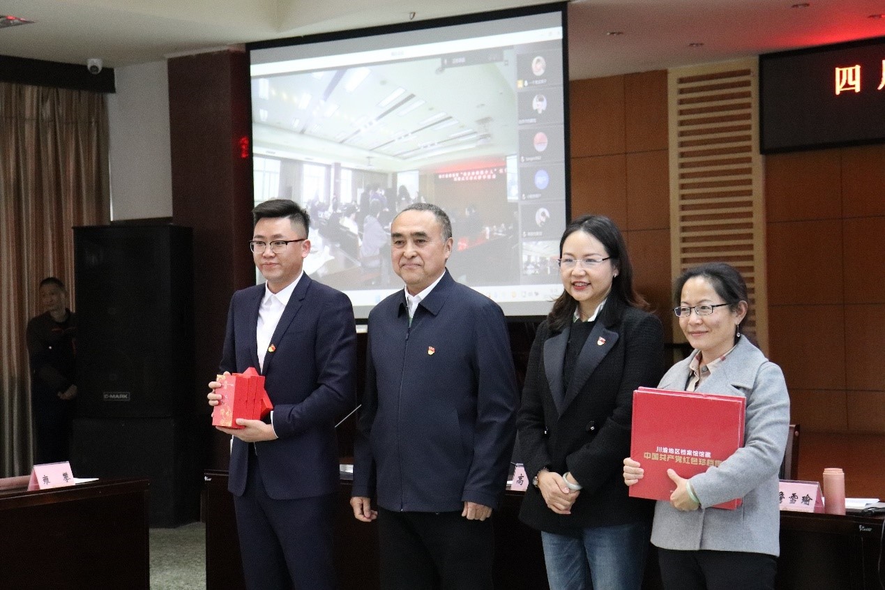 本次研习活动主要分为红色档案沉浸式互动式体验参观、文化产品展示展播、研习交流三个环节。活动开展之前,档案学专业团支部同教工二支部及省档案馆党支部进行了合影留念,并向四川省档案馆本次研学活动的主要负责人献花和送去美好祝福。