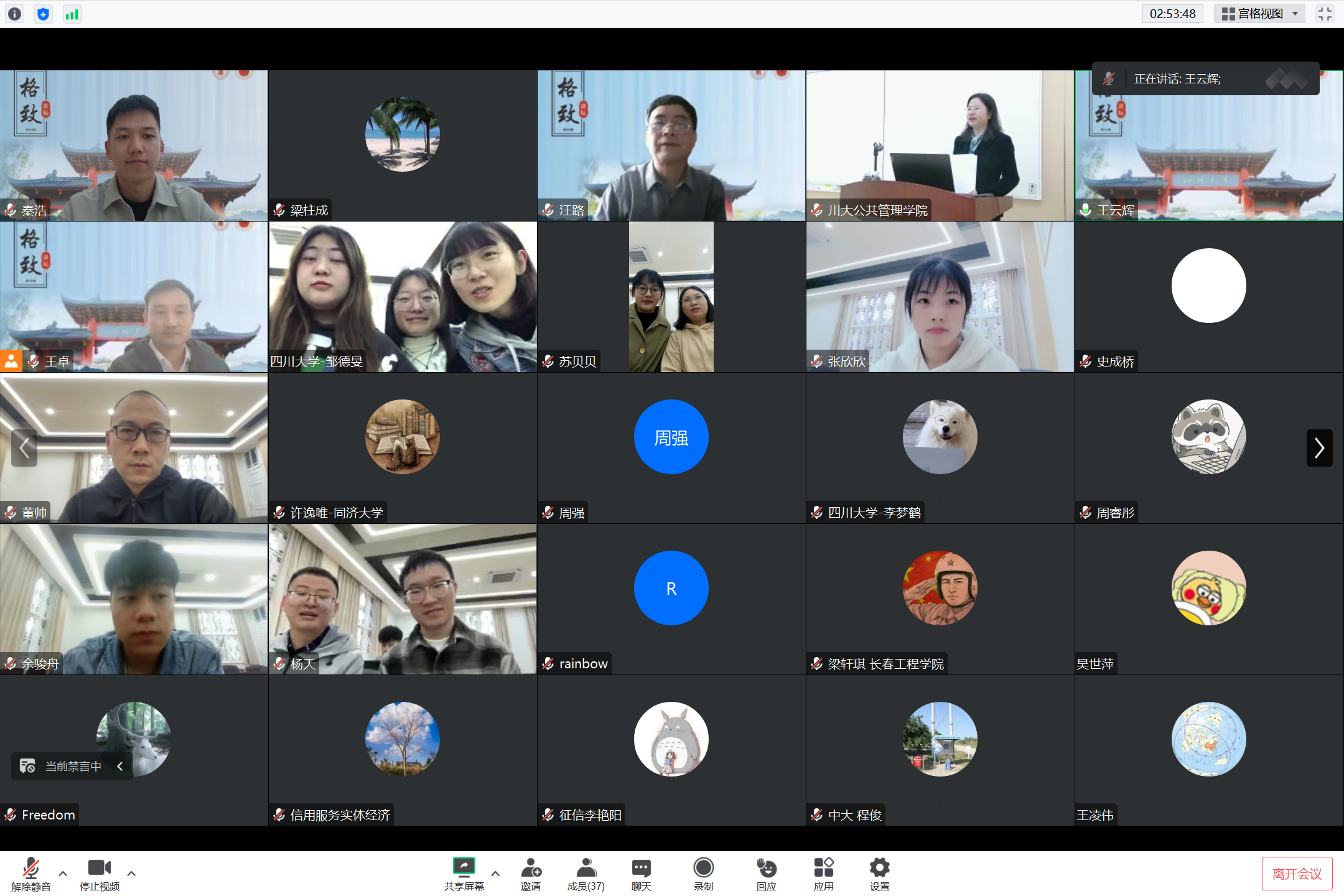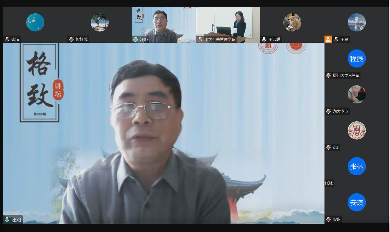 3月21日下午,中国人民银行征信中心原副主任、上海立信金融会计学院客座教授汪路应邀做客PA视讯游戏官网格致论坛,做题为“我国信用体系建设研究”的讲座。本次讲座采用线上线下结合的形式,一百余位来自本校和全国各地的师生、学者参加了本次讲座。