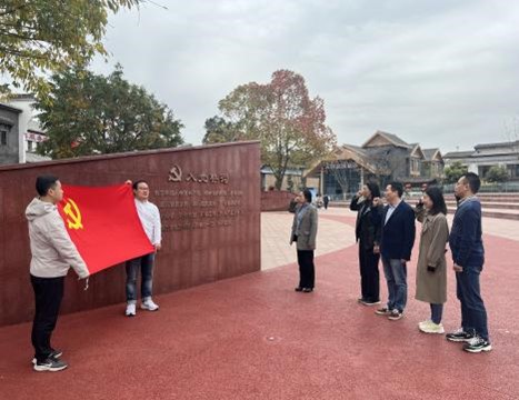 下午,支部部分成员与社保工会小组部分会员一起学习了战旗村乡村振兴的实践。战旗村在党建引领、集体经济、土地整理、集中居住、乡村旅游、城乡互动、群众文化、村民福利等方面都做出了突出的成绩,展现一二三产业深度融合、都市现代农业蓬勃发展的新局面。2018年2月12日,习近平总书记视察战旗村,高度评价了战旗村各项工作,指出“战旗飘飘,名副其实”,并寄予乡村振兴要“走在前列,起好示范”的殷切嘱托。在战旗村,大家一起参观和学习了“不忘初心馆”、村史馆、集体经济发展史等。活动中,支部书记吴敏同志带领本支部党员面向党旗庄严宣誓,重温入党誓词,让大家牢记初心使命和为民服务宗旨。