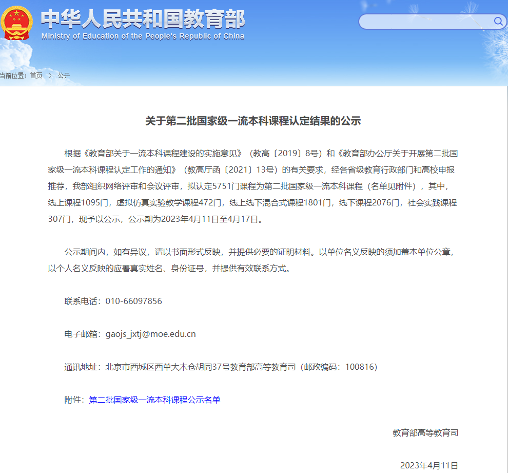 近日,国家教育部发布了《关于第二批国家级一流本科课程认定结果的公示》,PA视讯游戏官网再创佳绩。