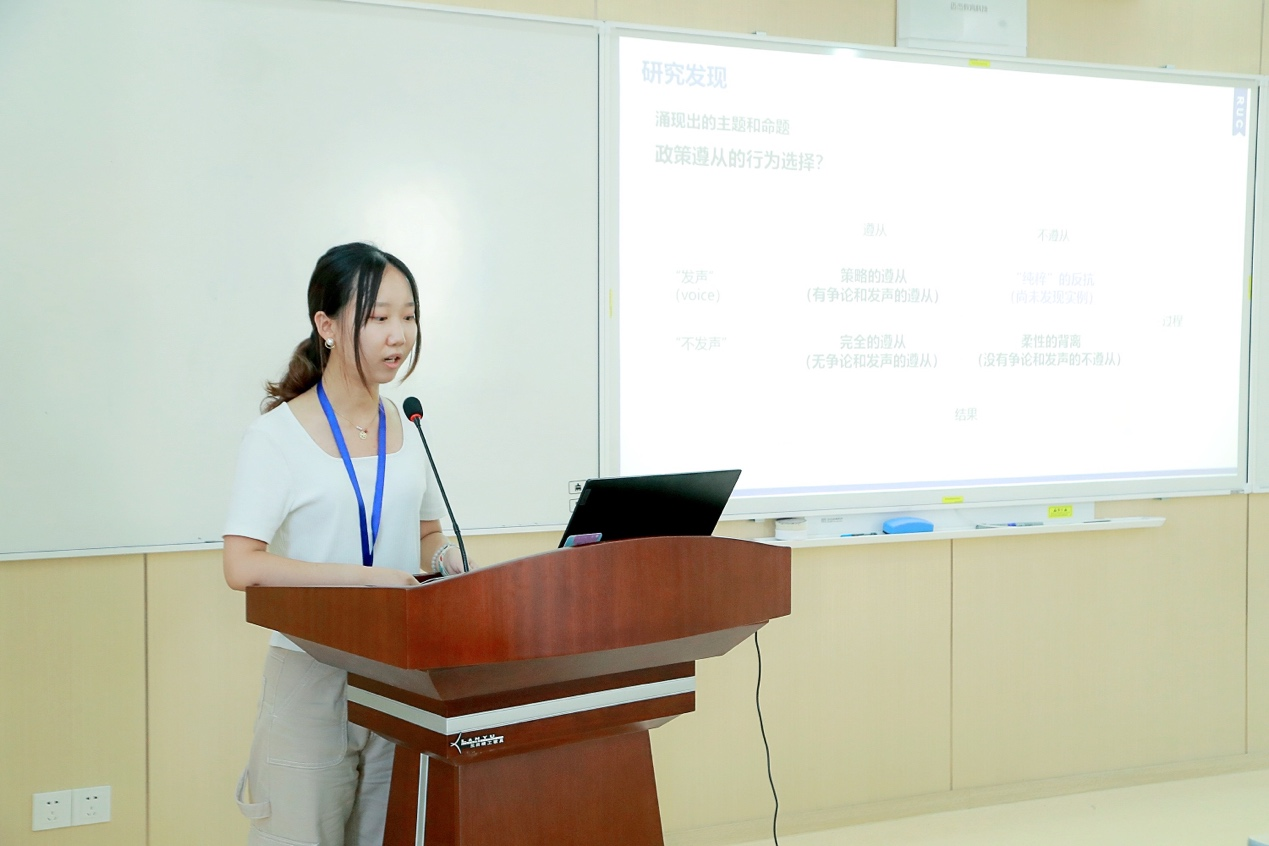 中国人民大学PA视讯游戏官网郭一帆代刘杨发表了题为《公民的遵从行为和影响因素:基于我国疫情防控的扎根研究》的报告。报告通过对我国疫情防控的扎根研究,指出公民政策遵从行为包括策略的遵从、完全的遵从、“纯粹”的反抗与柔性的背离,提出政策遵从行为的影响因素包括政策合法性感知、街头官僚的特征和行为、个体因素、社会因素。