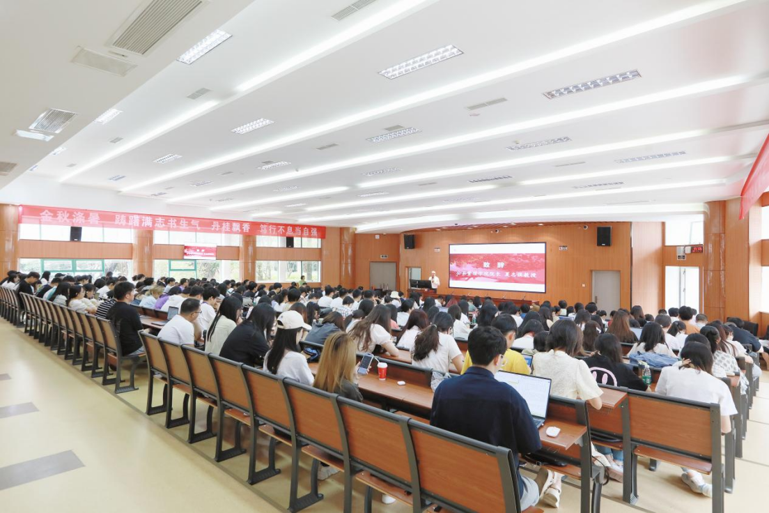 2023级社会学专业徐宇航同学作为新生代表发言。他从理想与现实、内卷与躺平、当下和未来的选择和思考中,提出明确方向,积累学术,服务社会的重要性,并与新同学们在厚植家国情怀,勇担社会责任中共勉奋进。