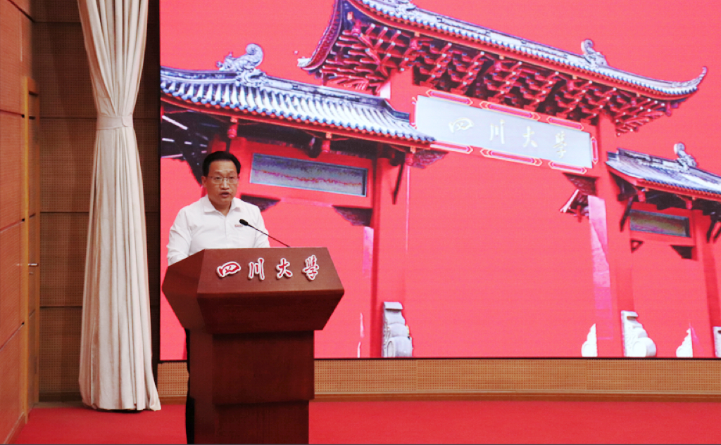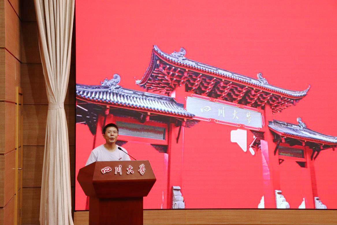 2023级MPA新生代表周川与大家表达了自己激动忐忑之情以及对未来3年学习生活的期待。他希望同学们能一起向着成为一名合格的川大人、公管人努力奋斗!