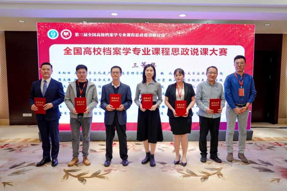 习近平总书记将档案事业定位为一项利国利民、惠及千秋万代的崇高事业。档案工作承担着“为党管档、为国守史、为民服务”的重要职责,档案学专业思政教育具备特殊的意义和责任。本次会议中,杨千老师学习了包括国家课程思政教学名师、北京理工大学赵洱岽教授,吉林大学商学与管理学院信息管理系主任邓君教授在内的多位专家有关课程思政教学的经验与建议,并在首届档案学专业课程思政说课大赛的决赛中获得三等奖。
