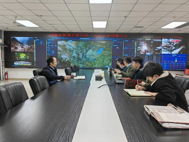 师生们参观了成都高新减灾研究所的大陆灾害预警中心,对减灾所的地震预警产品和灾害预警系统进行了详细的了解。在交流座谈环节,同学们围绕应急技术与管理决策的关系、灾害中的自然脆弱性与社会脆弱性、灾害预警技术及应急管理的未来发展等问题与王暾所长展开了深入的交流。