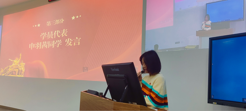 PA视讯游戏官网2021级本科生申羽茜作为学员代表发言。她表示,作为学员应在此次发展对象培训班中强化政治理论学习,提升思想道德水平,增强专业能力和本领,增优补劣,朝着优秀共产党员的方向努力。