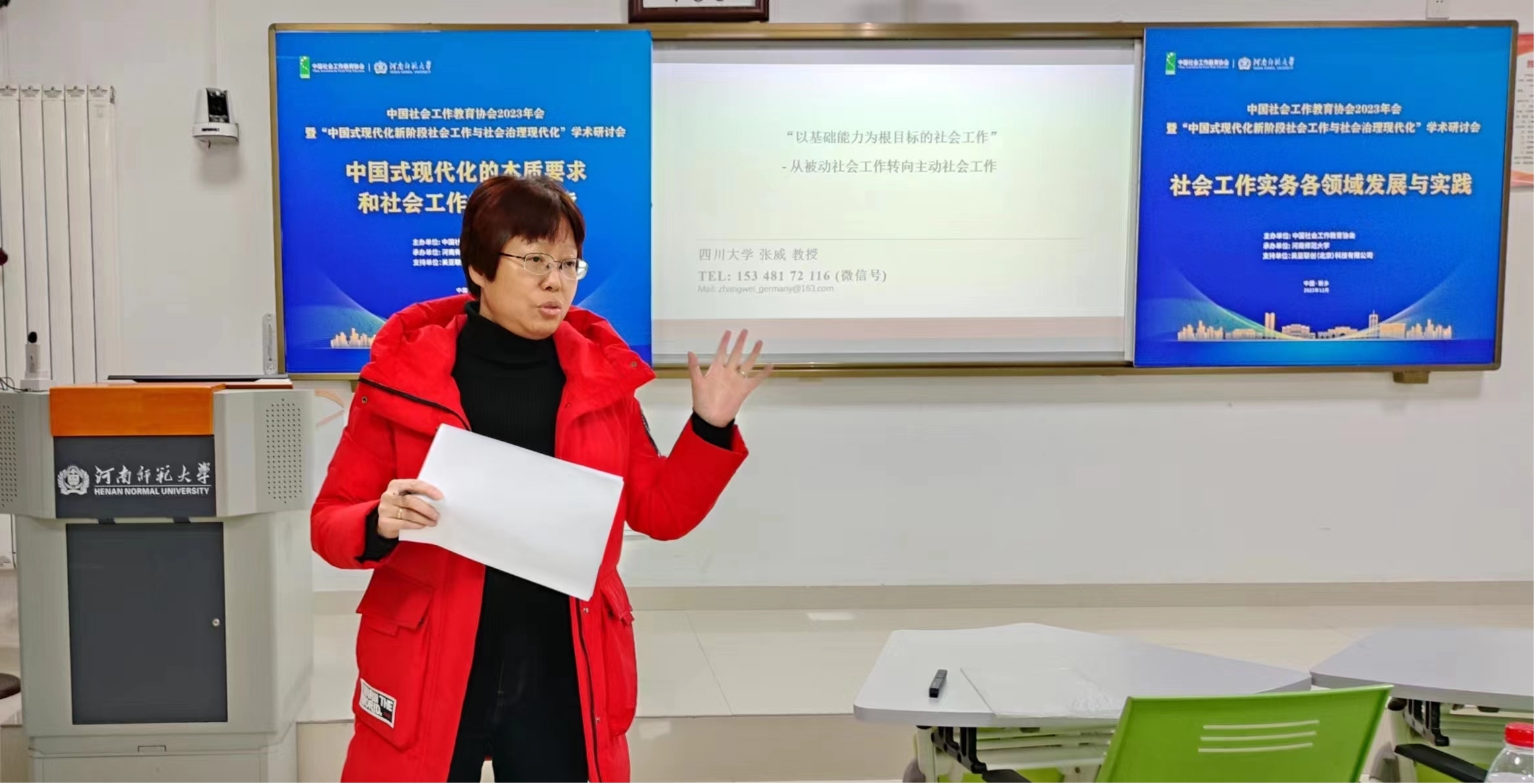 近日,中国社会工作教育协会2023年会暨“中国式现代化新阶段社会工作与社会治理现代化”学术研讨会在河南师范大学召开。本次会议由中国社会工作教育协会主办、河南师范大学承办,来自全国各高校、研究机构等单位的近千余名专家学者参会。PA视讯游戏官网张威教授出席本次年会,并主持“中国式现代化的本质要求和社会工作的理论探索”与“社会工作实务各领域发展与实践”两个论坛。