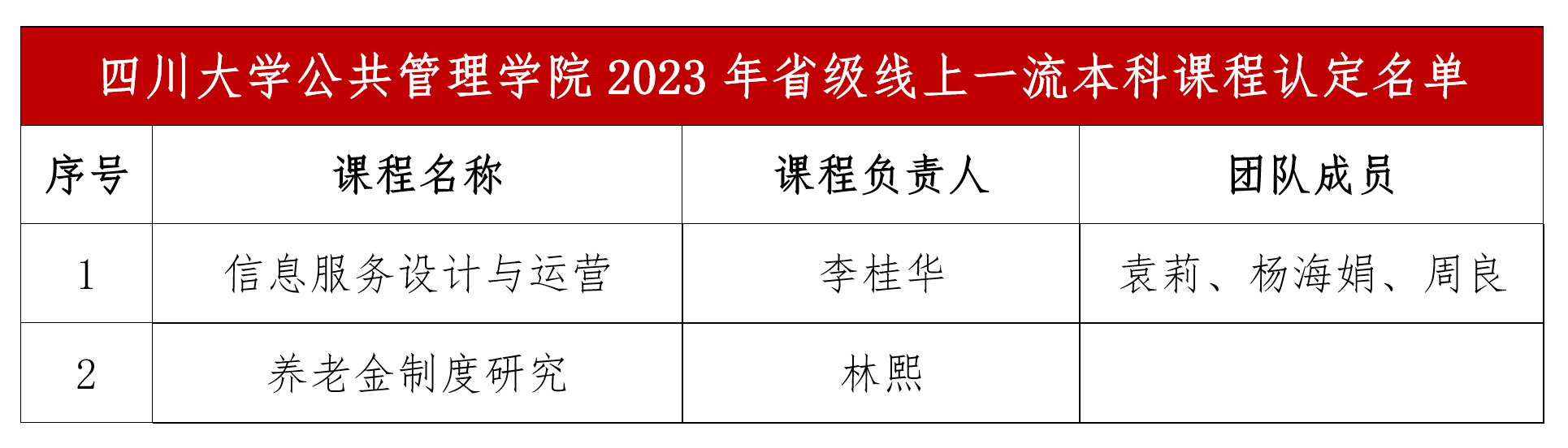 近日,四川省教育厅发布《关于公布2023年省级线上一流本科课程认定结果的通知》(川教函〔2024〕248号),我校再创佳绩。学院高度重视本科教学工作,落实立德树人根本任务,持续加强课程建设,学院教师积极投身本科课程教学改革与创新。经过多年对课程设计、课堂改革、教学理念和教法研究等多维度的思考和筹备,PA视讯李桂华教授、林熙副教授开设的2门课程被认定为2023年省级线上一流本科课程。现在PA视讯累计已有9门省级一流本科课程。